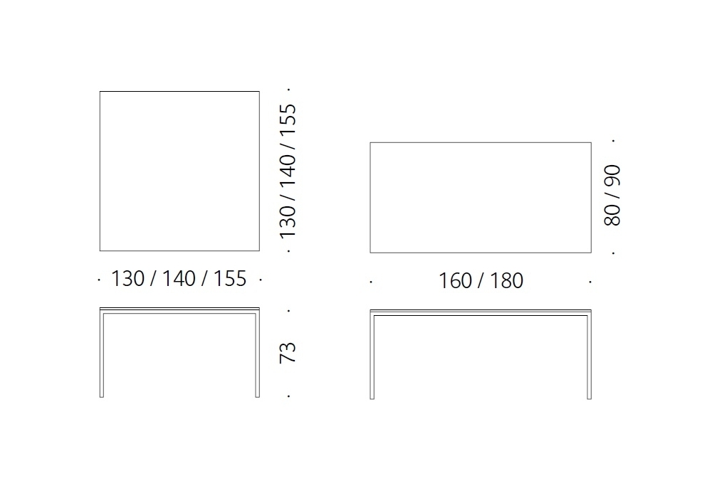 Quadrato diseñada y producida por DePadova es una mesa con base en acero pintado en polvo blanco y tapa en panel de partículas con borde de madera contrachapada marina recubierta con laminado HPL blanco. Disponible en diferentes tamaños.