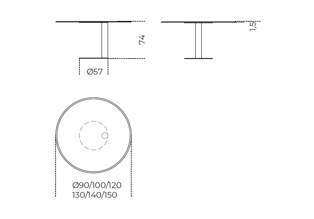 | Diámetro de la superficie | 90 / 100 / 120 / 130 / 140 / 150 cm |