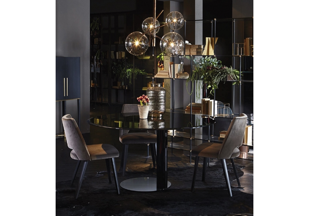 Oto diseñada por Oscar & Gabriele Buratti para Gallotti & Radice es una mesa con superficie en vidrio biselado de 15mm. Estructura de metal lacado brillante. Disponible en los colores negro, azul grisáceo y regaliz.