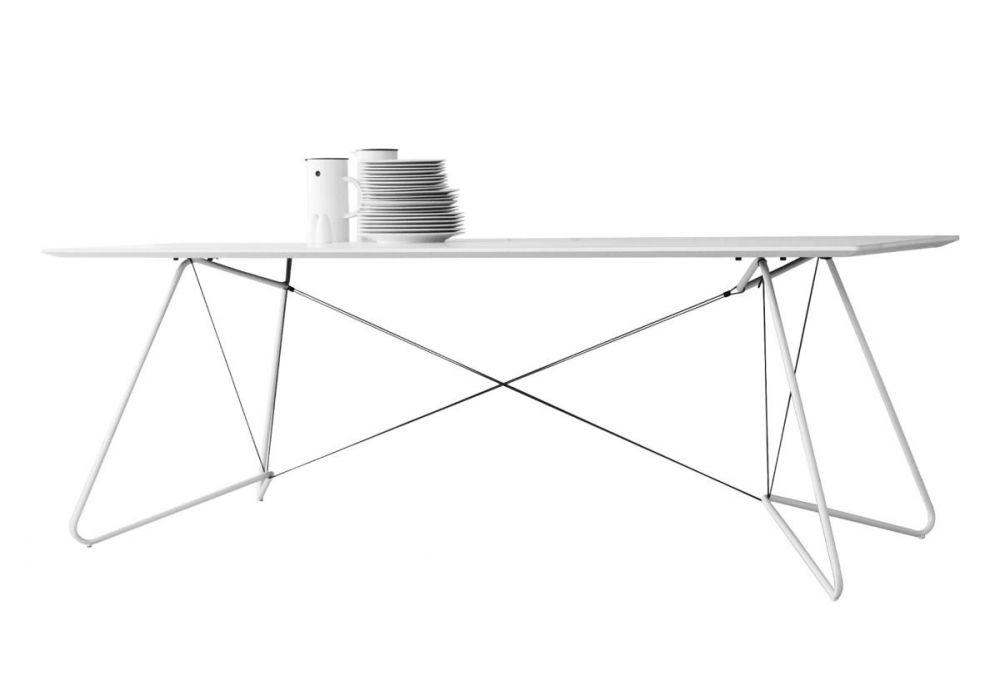 Oas designed by OK Design is an elegant table with a combination of tubes and strings supporting a linoleum black or laminated white top. It’s excellent as a dining table to enhance your living room's style. It is also available in 2 different sizes: 170 cm x 90 cm or in a bigger version 200 cm x 90 cm.
