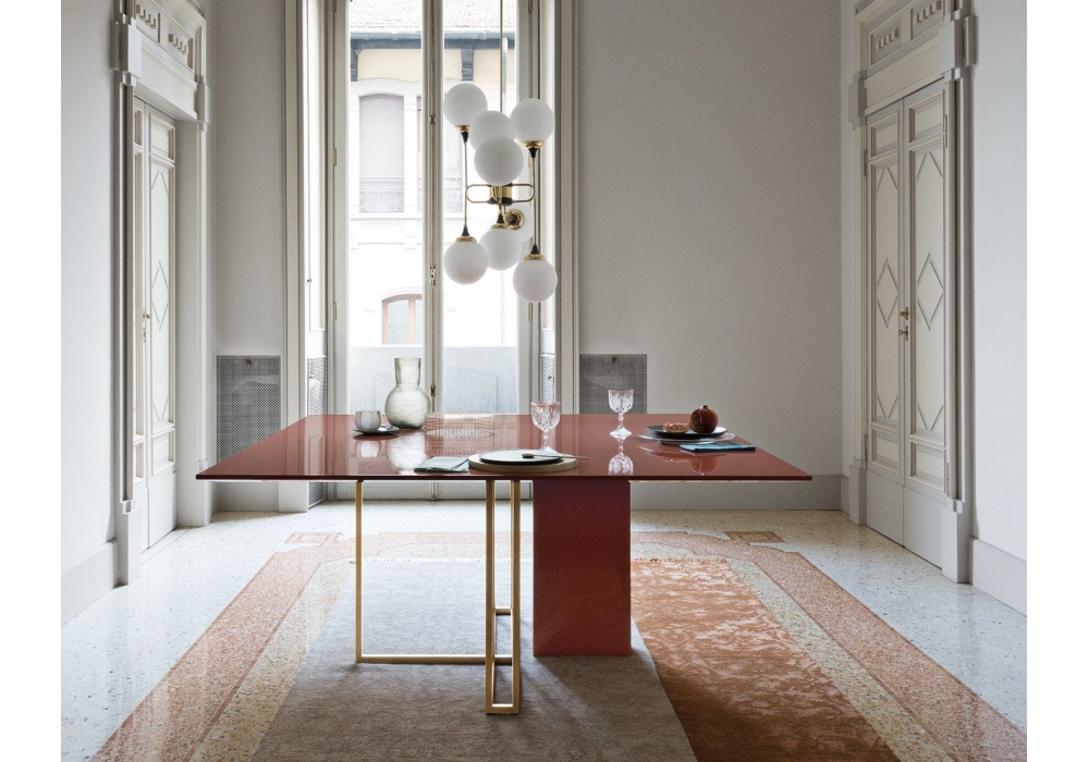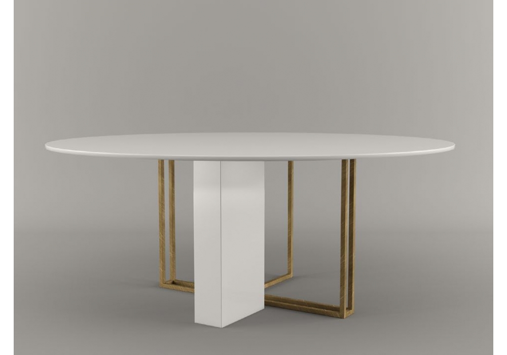 Plinto XW designed by Andrea Parisio for Meridiani is a dining table that has a base composed of a metal frame and a one-piece available in matt or glossy lacquer, marble or wood. Table top is realized in different sizes and shapes and it made of wood, marble or lacquered in matt or glossy finish.