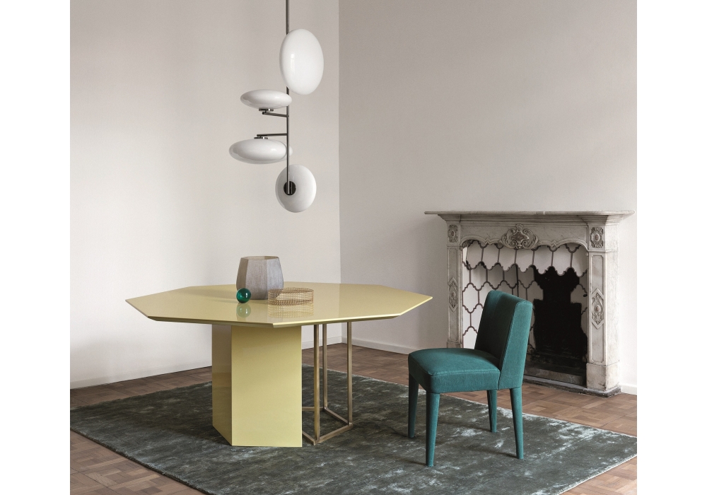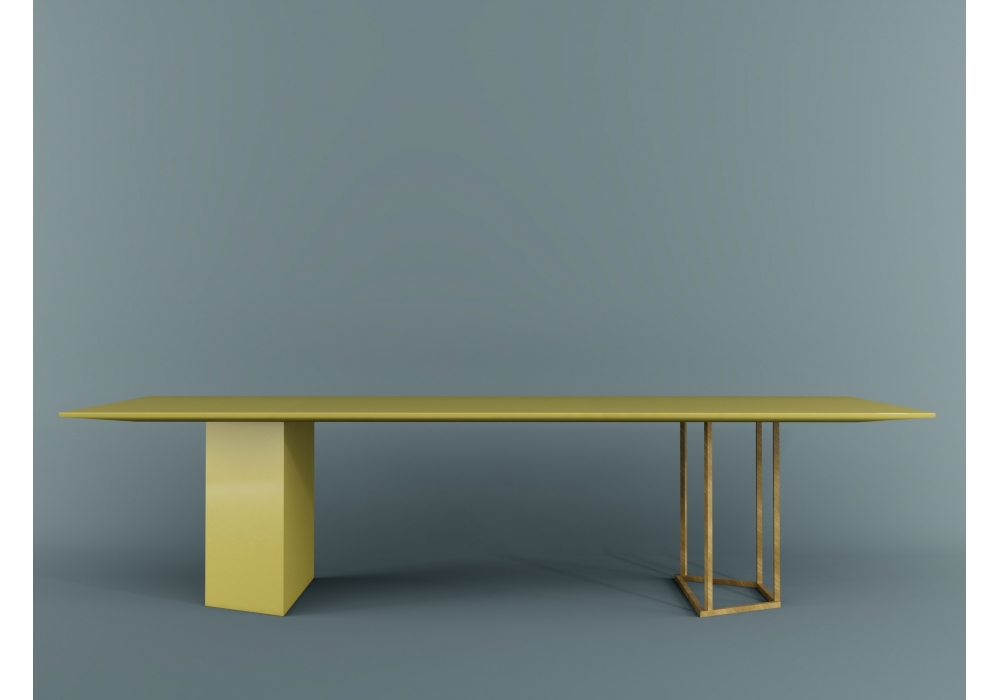 Plinto ZK designed by Andrea Parisio for Meridiani is a dining table that has a base composed of a metal frame and a one-piece available in matt or glossy lacquer, marble or wood. Table top is realized in different sizes and shapes and it made of wood, marble or lacquered in matt or glossy finish.