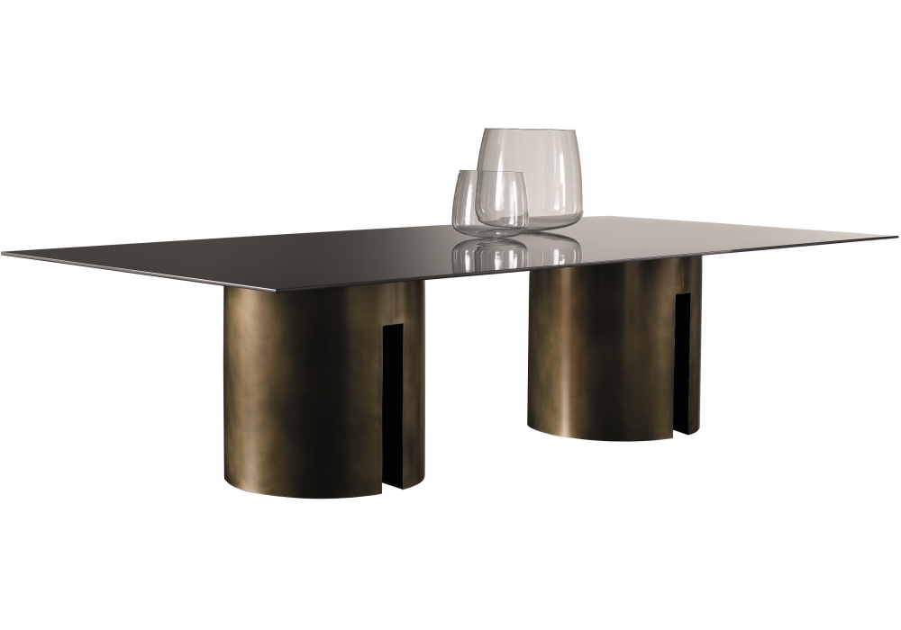 Gong diseñada por Andrea Parisio para Meridiani es una colección de mesas con base disponible en latón bronceado o platimun steel y parte interior barnizada mate black. Tablero disponible en enchapado en roble teñido, lacado mate o brillo,vidrio retrobarnizado, resina, latón bronceado (parte inferior del sobre laca mate elephant, platinum steel (parte inferior del sobre laca mate putty) y mármol.