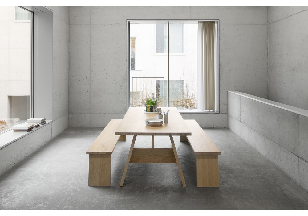 DC01 Fayland diseñada por David Chipperfield para E15 es una mesa en madera maciza. Fayland tiene una barra horizontal con el apoyo centrado que proporciona estabilidad, mientras que la tabla termina solapar el bastidor, proporcionando espacio de asientos adicionales. Disponible en tres acabados y cuatro dimensiones.