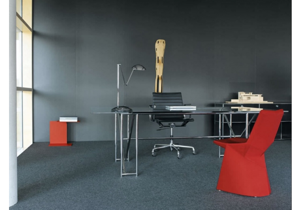 Double X diseñada por Eileen Gray para ClassiCon es una mesa con estructura de tubos de acero cromado. Tablero disponible en cristal o fresno barnizado en negro. Disponible en diferentes dimensiones.