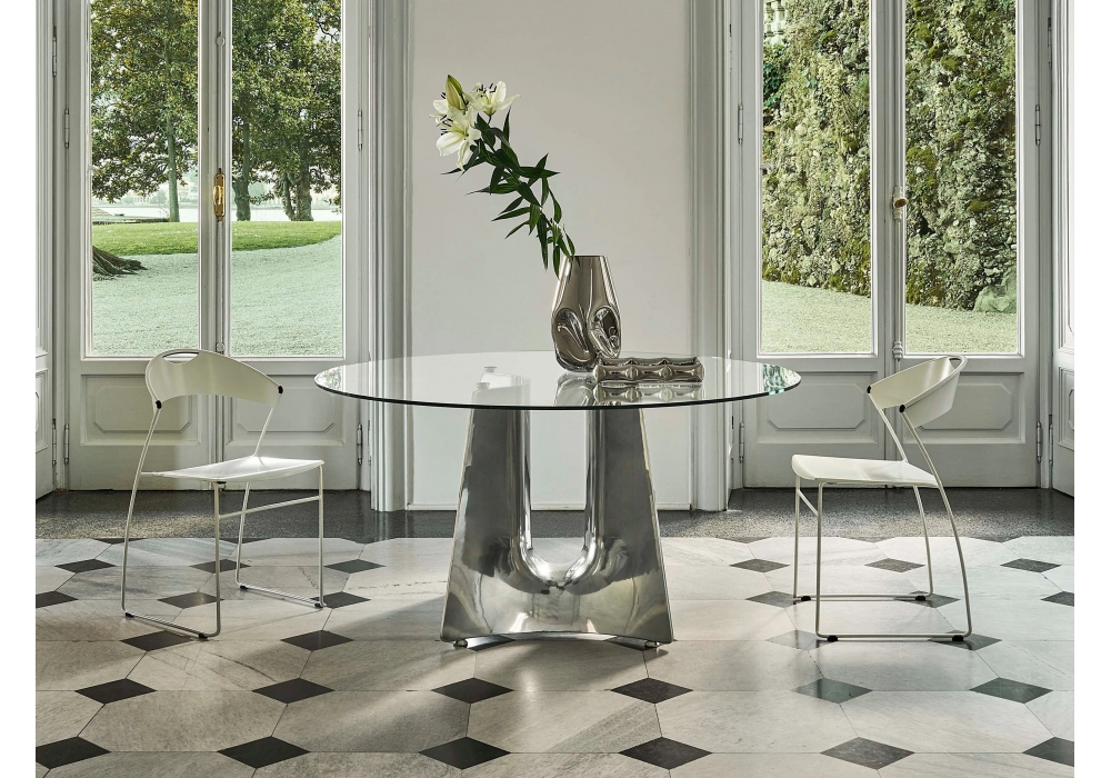 Bentz diseñada por Jeff Miller para Baleri Italia es una hermosa mesa con base en aluminio fundido y tablero de vidrio templado de 10 mm circular, cuadrado, rectangular o elíptico, bien conectados a la base a través de un mecanismo innovador.