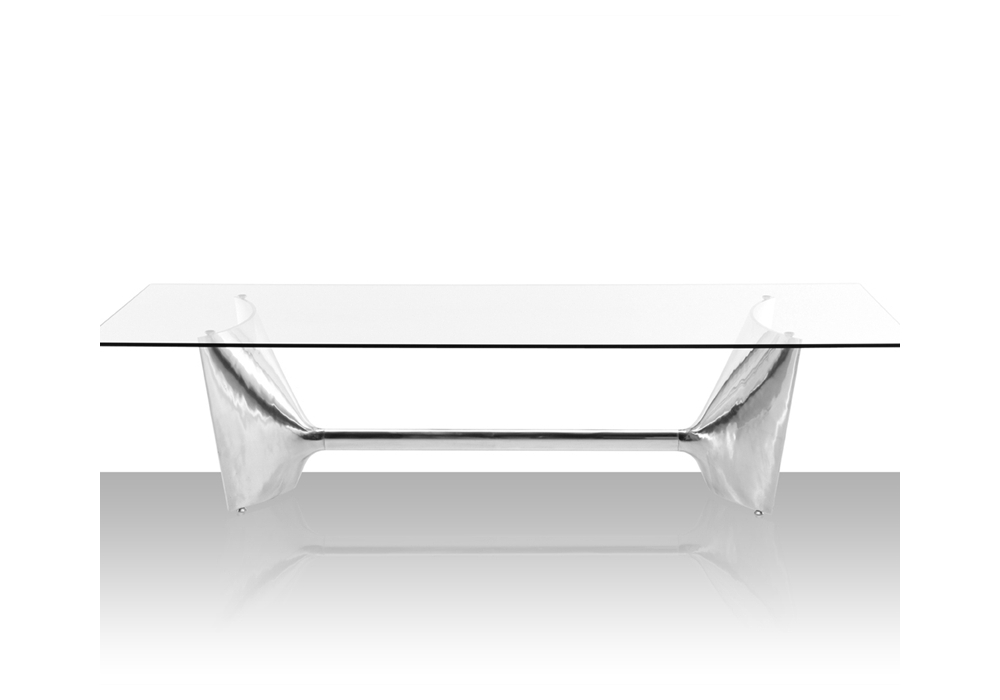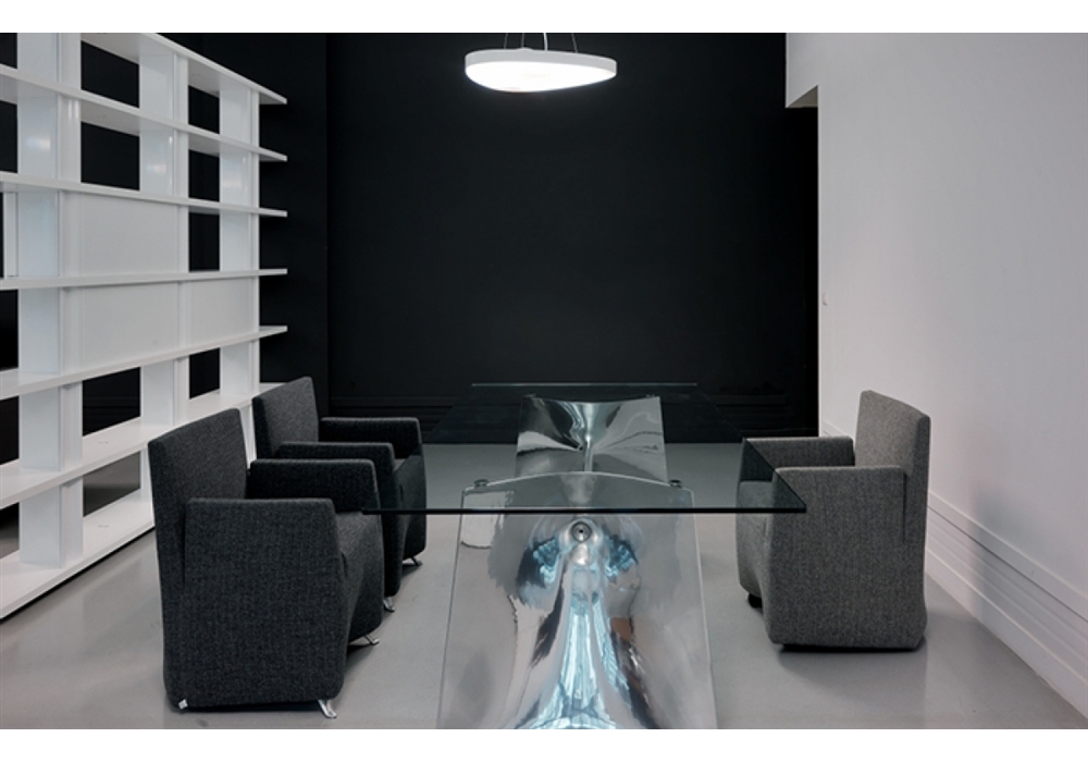 Fratino diseñada por Jeff Miller para Baleri Italia es una hermosa mesa con base de aluminio compuesta por dos piezas fundidas especulares unidas por un travesaño extrusionado de sección elíptica. Disponible en varios tamaños, con tableros rectangulares de vidrio templado transparente (espesor 15 mm). El tamaño de la base y del travesaño varía según las dimensiones del tablero. La base puede invertirse y utilizarse con el travesaño en la parte superior, invirtiendo la posición de las patas y los soportes del tablero. Patas de acero inoxidable.
