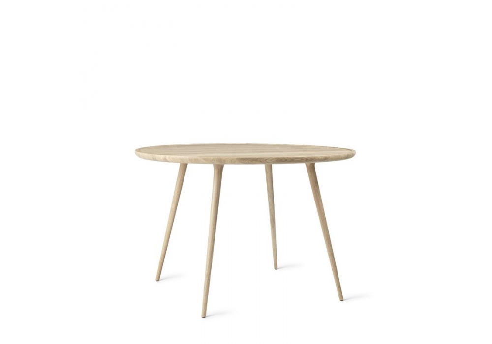 Accent Dining Table diseñada por Space Copenhagen para Mater es una mesa hecha de madera maciza de roble con certificación FSC. La colección Accent combina estética escultórica y artesanía e incluye mesas de centro, mesas de centro y mesas.