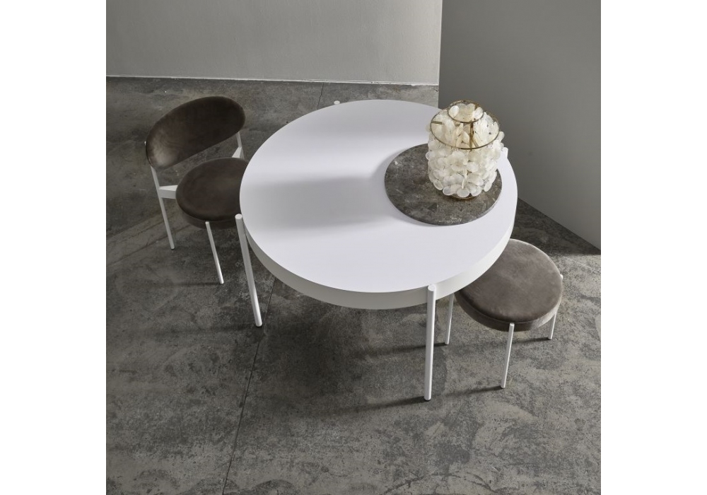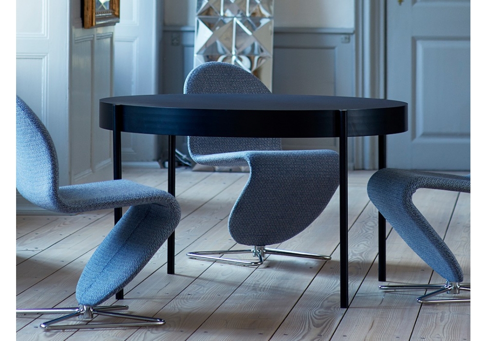 Series 430 diseñada por Verner Panton para Verpan es una mesa redonda con tablero en fenix, estructura y patas en metal y borde en MDF pintado. Disponible en diferentes acabados y dimensiones.