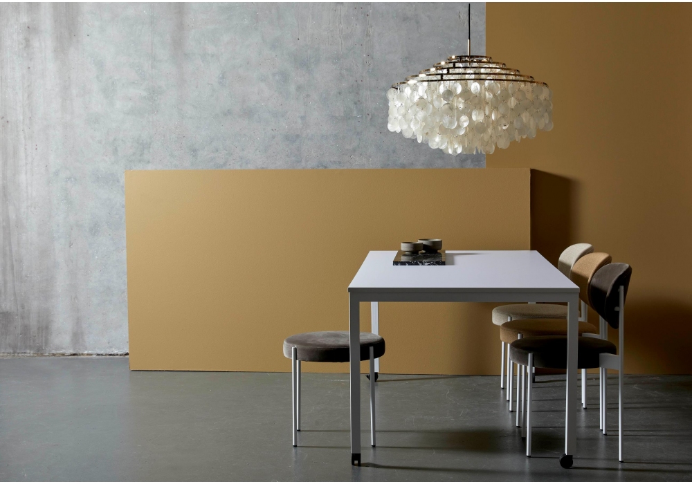 Panton Move diseñada por Verner Panton para Verpan es una mesa montada sobre 4 ruedas. Estructura de tubo cuadrado de acero con recubrimiento en polvo y tapa de MDF con material nanotecnológico Fenix. Disponible en negro o blanco.