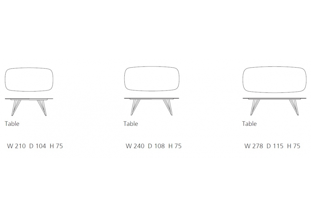 | Dimensiones | 210 x 104 x H 74 cm; 240 x 108 x H 74 cm; 278 x 115 x H 75 cm |
