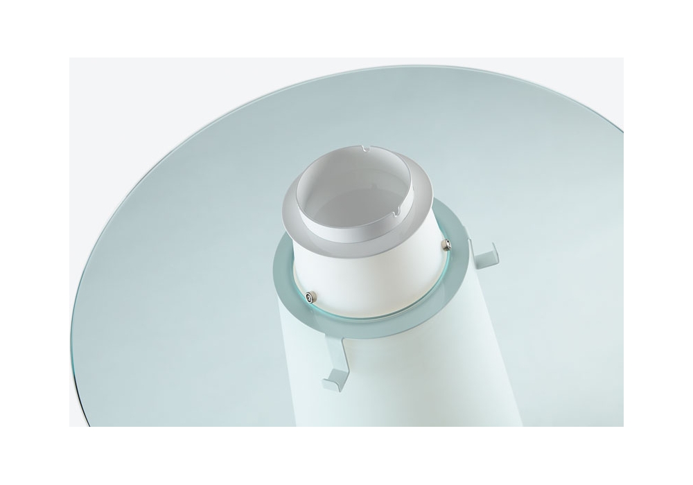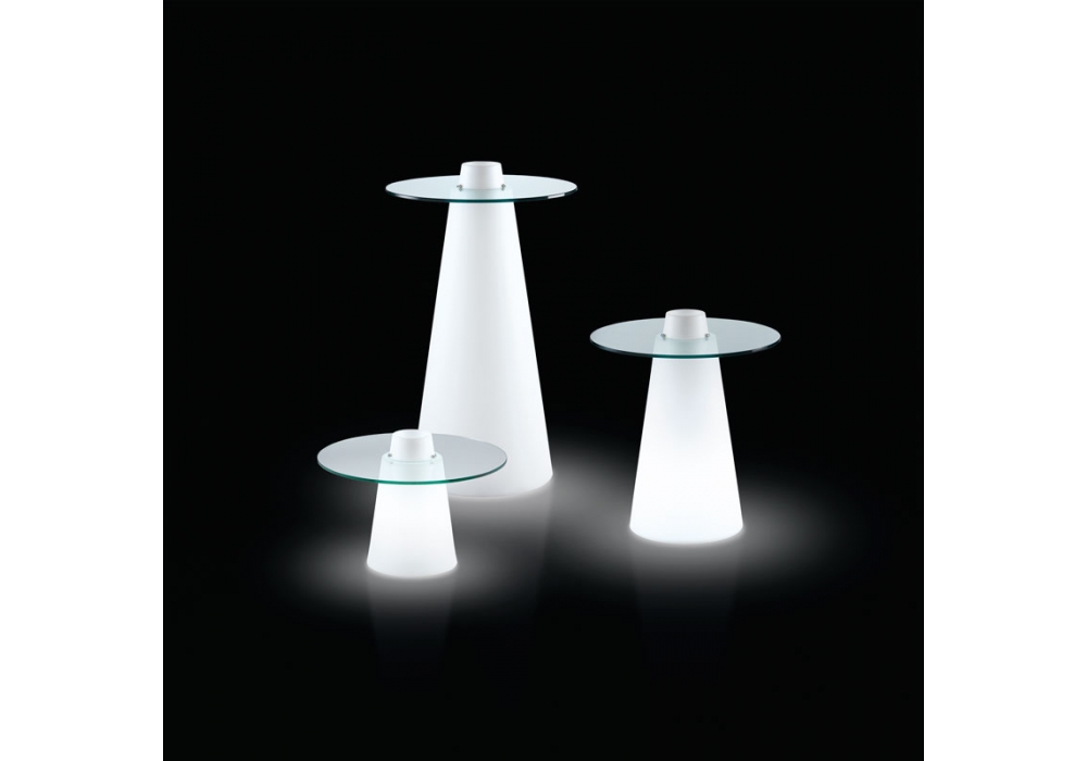 Peak diseñada por Aksu/Suardi para Slide es una mesa realizada en polietileno con la superficie de vidrio templado.