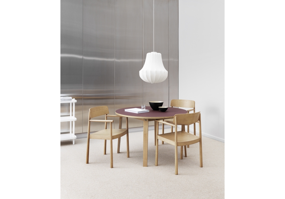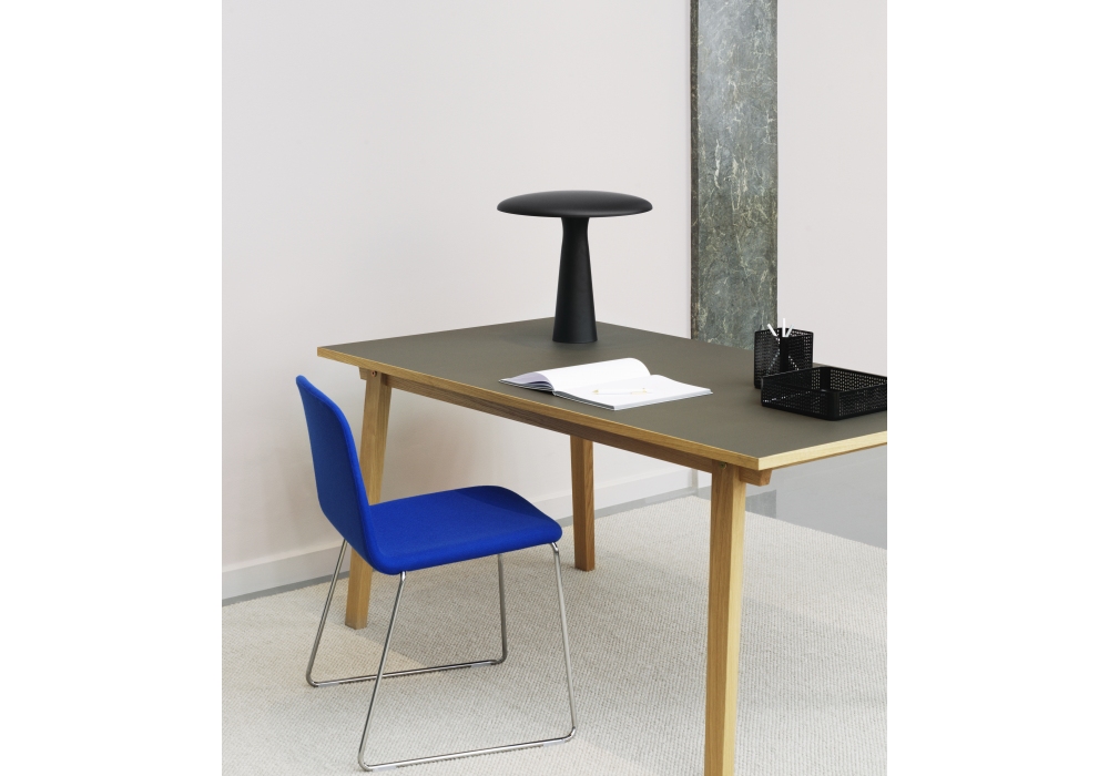 Slice, diseñada por Hans Hornemann para Normann Copenhagen es una mesa, realizada íntegramente en roble con tablero enchapado en linóleo. El linóleo al ser un producto natural tiene propiedades antibacterianas y autoreparadoras, con una superficie aterciopelada, suave y agradable al tacto y gracias a la resistencia de los materiales, la serie Slice es perfecta para un uso frecuente. Slice está disponible en diferentes acabados y tamaños.