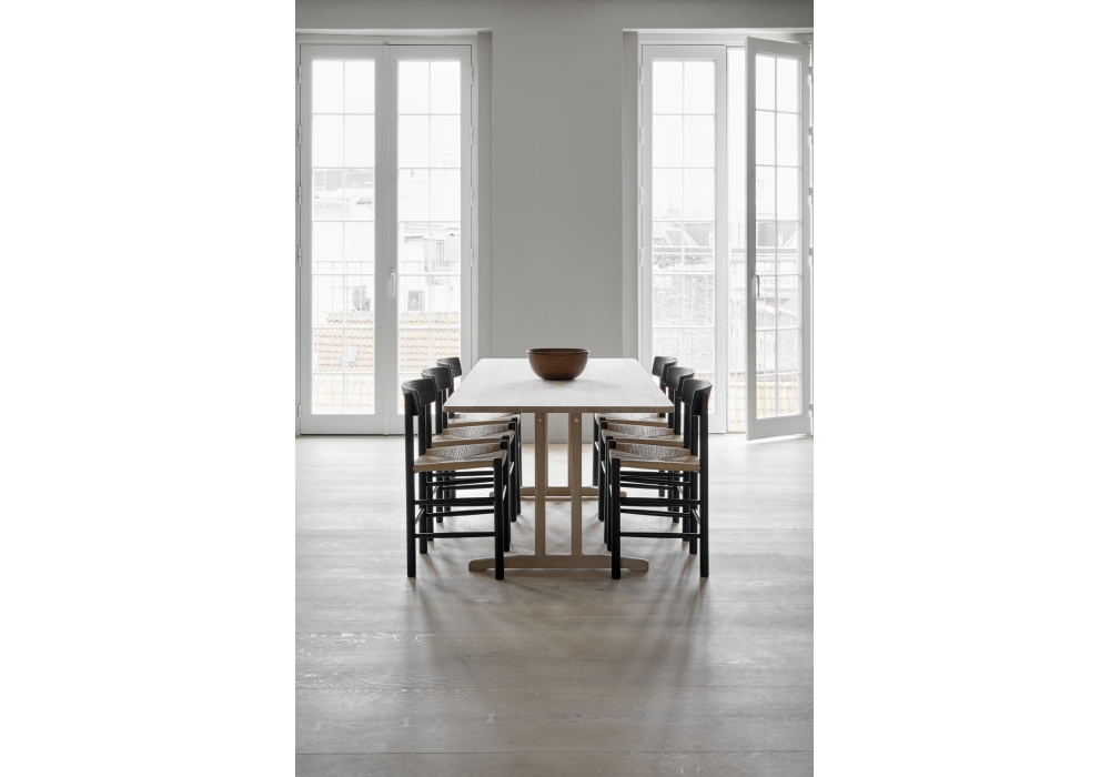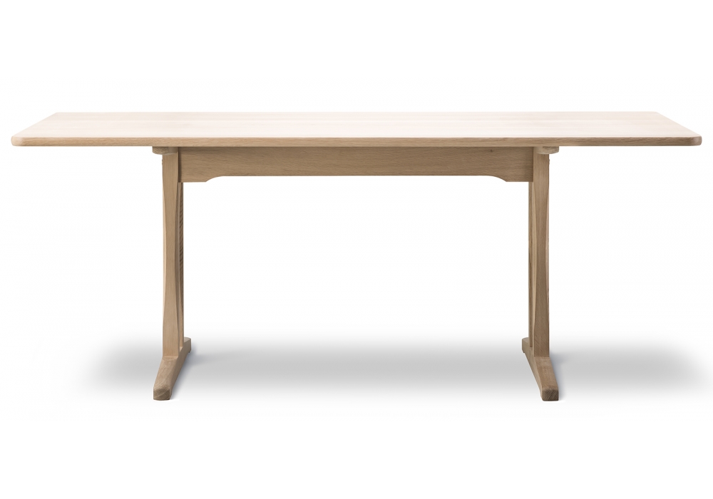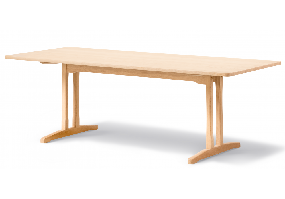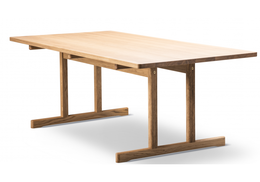 C18 Mogensen Shaker diseñada por Børge Mogensen para Fredericia es una mesa rectangular con estructura y tapa en madera maciza de roble. Pata montada con tornillo de latón visto.