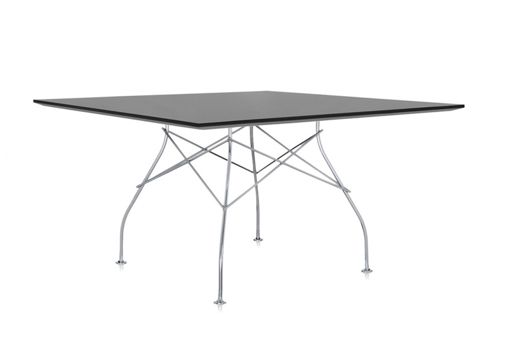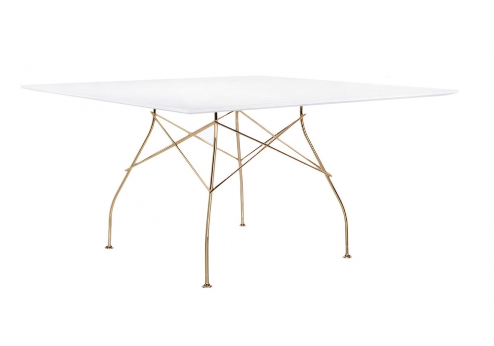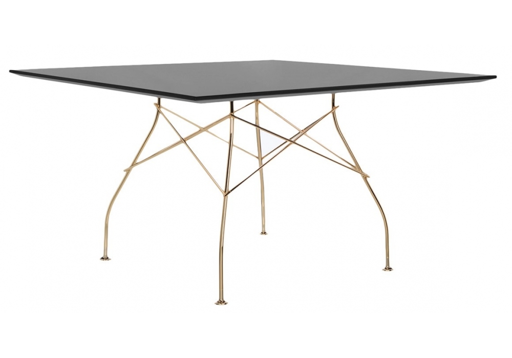 Glossy diseñada por Antonio Citterio & Oliver Löw para Kartell es una mesa con estructura en acero cromado o dorado y tablero en MDF lacado poliéster.