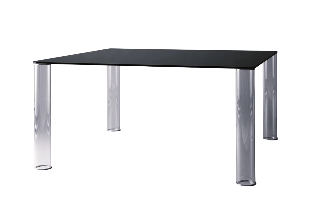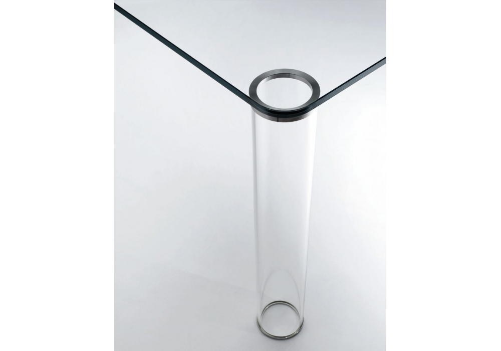 Pipeline, diseñada por Piero Lissoni para Glas Italia, es una mesa con tres o cuatro patas cilíndricas (según el tamaño) fabricada en vidrio borosilicato transparente. El tablero es de vidrio templado transparente o lacado brillante.
