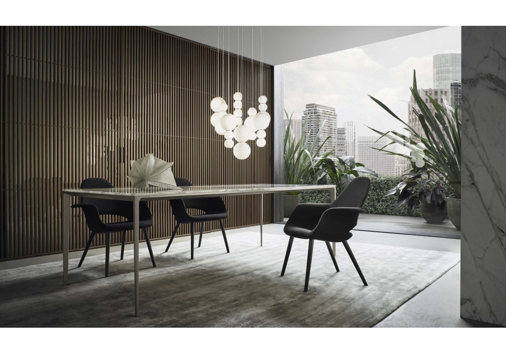 Long Island diseñada por Giuseppe Bavuso para Rimadesioes una hermosa mesa esencial y refinada, expresión coherente de la particular filosofía de Rimadesio. Long Island conjuga la estética rigurosa, la investigación tecnológica y la originalidad expresiva. La exclusiva variedad de acabados disponibles permite una combinación natural con las propuestas de la colección.