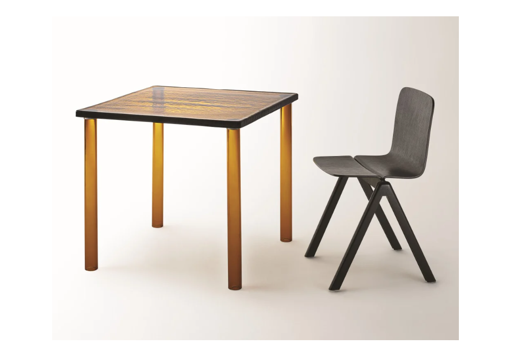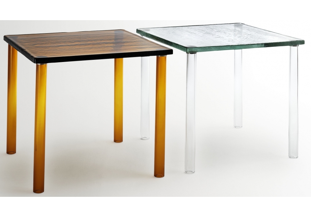 Nesting diseñada por Ronan y Erwan Bouroullec para Glas Italia, es una mesa fabricada íntegramente en cristal de Murano. Las patas cilíndricas son de vidrio soplado y se fijan al tablero mediante placas de acero inoxidable atornilladas.