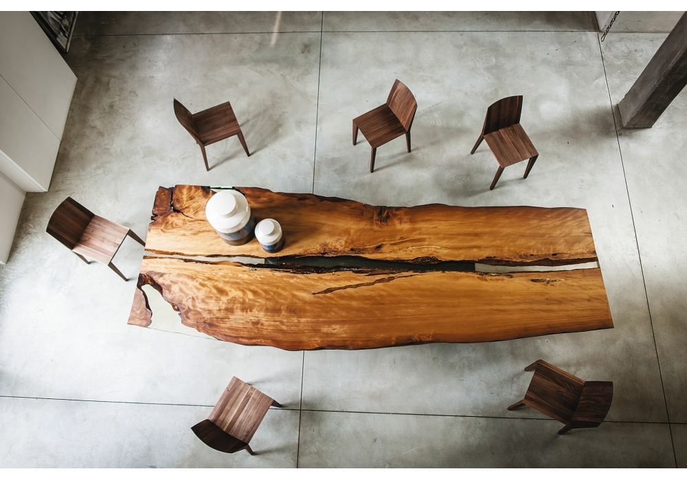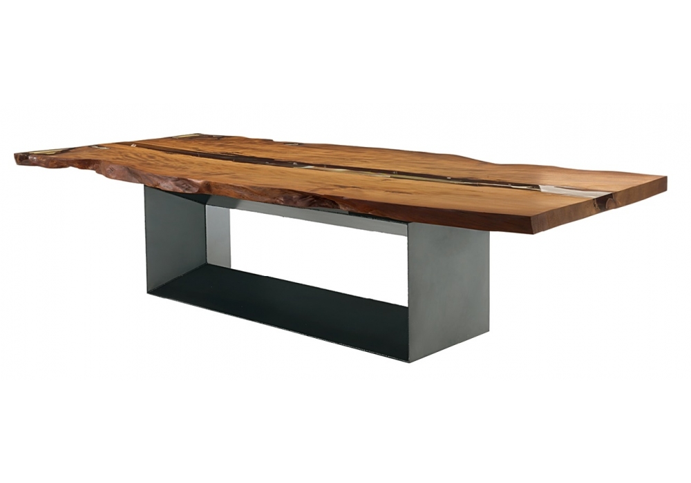 Cube Kauri diseñada por C.R. & S. Riva 1920 es una mesa realizada con una tapa maciza de Kauri, combinada con una base de hierro con sección de patín.