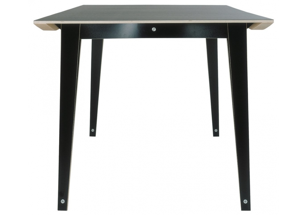 Spanoto Black diseñada por Jakob Gebert para Moormann es una mesa con tablero realizado en linóleo negro y patas, realizadas en madera contrachapada del abedul, que se pueden mover y sacar en cualquier momento. También disponible en 4 dimensiones.