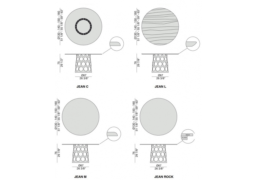 Jean diseñada por Carlo Ballabio para Porada es una mesa de comedor con base en metal disponible en diferentes acabados. Tapa en cristal transparente (espesor mm. 15), en nogal canaletta maciza, o en tipos diferentes de mármol (espesor mm. 20). Disponible en diferentes dimensiones.