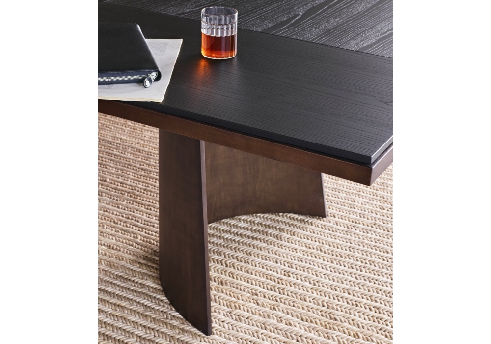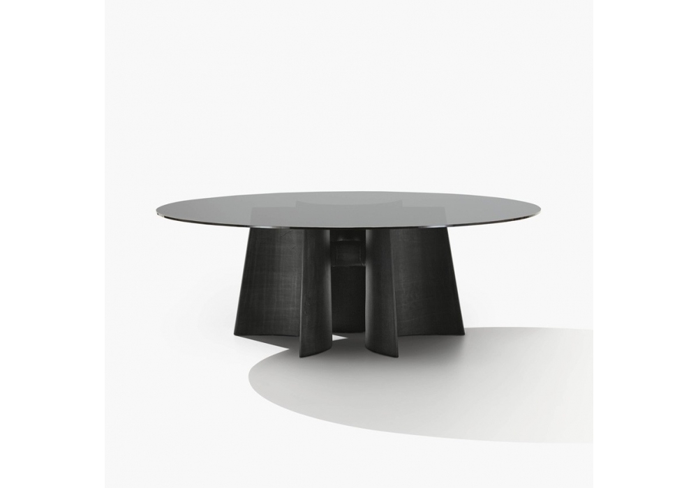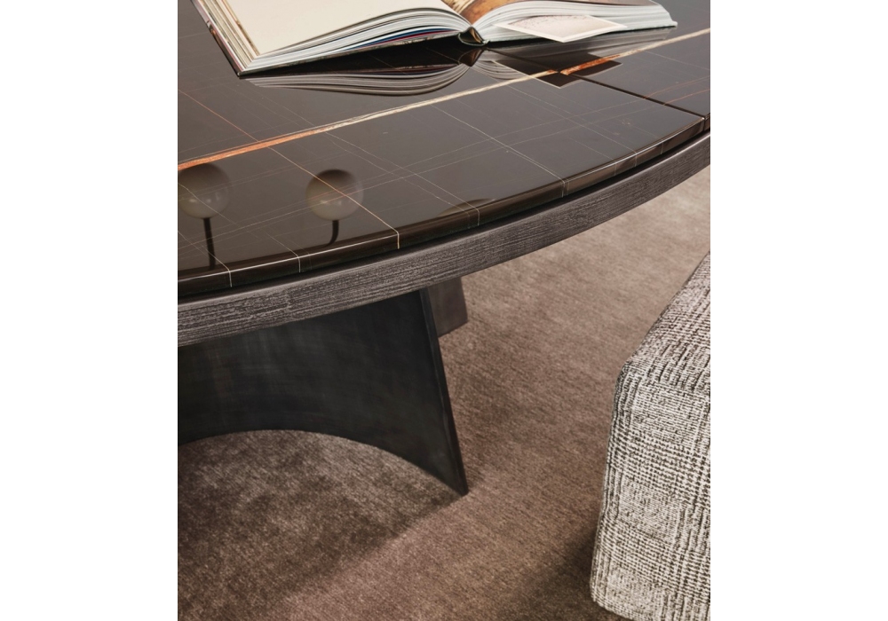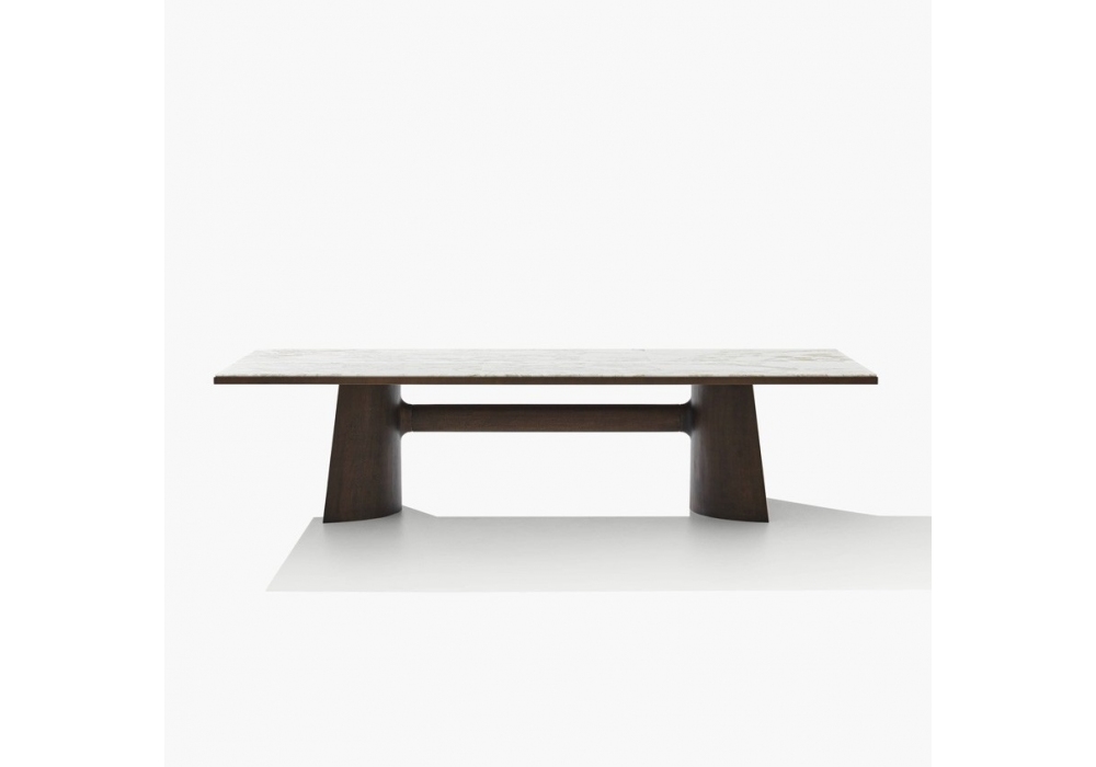 Kensington diseñada por Jean-Marie Massaud para Poliform es una mesa con tablero de madera o mármol y estructura en fundición de aluminio lacado/espatulado.
