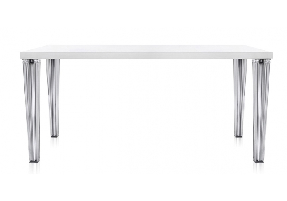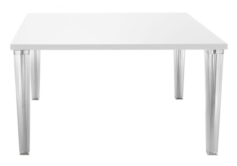 TopTop diseñada por Philippe Starck para Kartell es una mesa de 4 piernas realizada con tablero en poliéster lacado revestido con placa de vidrio y patas en PMMA transparente con estructura interna en acero cromado. Disponible en 2 dimensiones.