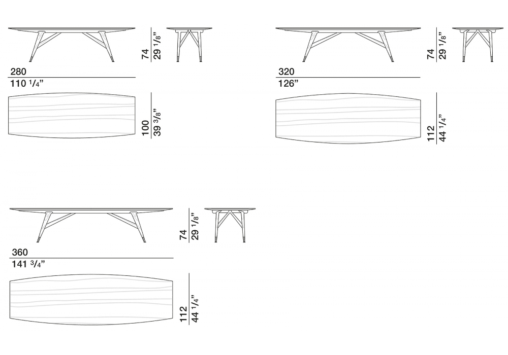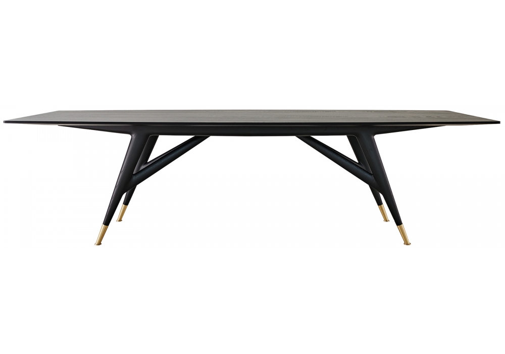 D.859.1 diseñada por Gio Ponti para Molteni&C es una mesa en fresno natural o teñido negro con pies en bronce satinado. Disponible en tres dimensiones.