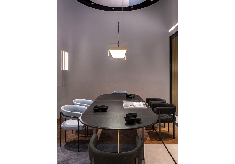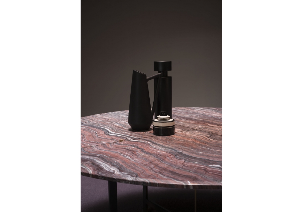 Placé diseñada por Federico Peri para Baxter es una mesa con superficie en piedra, disponible en diferentes acabados o tapizada en piel. Base de metal barnizada con efecto bruñido y detalles en latón satinado. Disponible en diferentes medidas. Las mesas redondas con superficie en piedra se completan con un Lazy Susan.