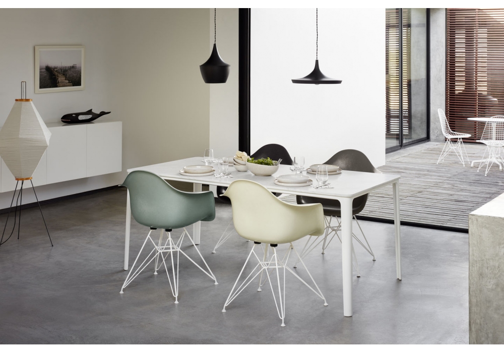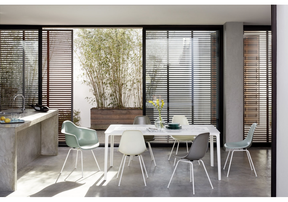 Plate Dining diseñada por Jasper Morrison para Vitra es una mesa con estructura en aluminio y tablero en MDF o madera maciza. Disponible en diferentes medidas y acabados.