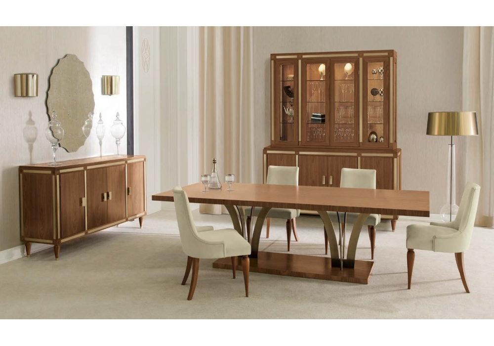 Oreste diseñada por Castello Lagravinese Studio para Opera Contemporary es una mesa de elegante diseño con superficie y base en madera y estructura metálica, disponible en diferentes acabados.