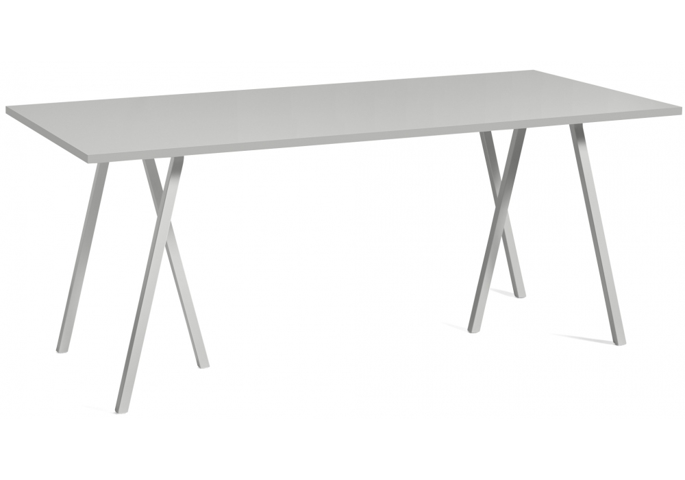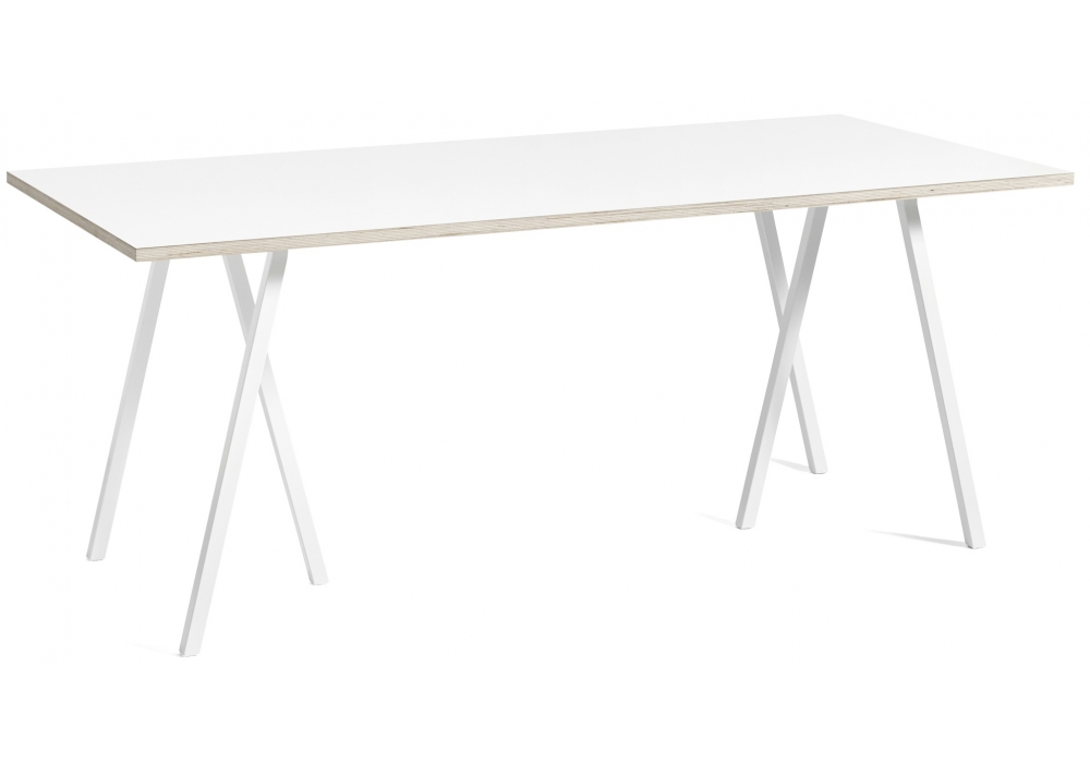 Loop Stand diseñada por Leif Jørgensen para Hay es una mesa con tablero de linóleo o laminado y patas de acero pintado en polvo. Almohadillas de fieltro incluidas. Disponible en diferentes medidas y acabados.