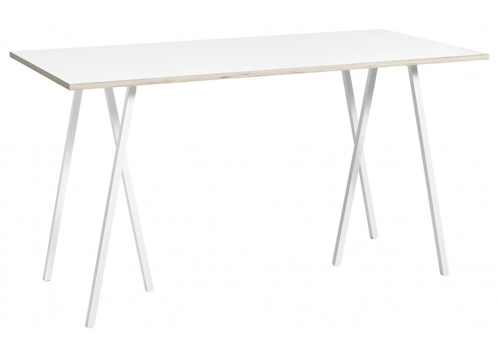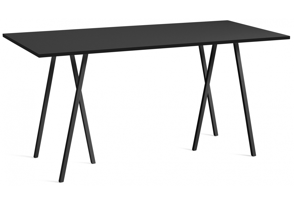 Loop Stand High diseñada por Leif Jørgensen para Hay es una mesa con tablero en linóleo negro o laminado blanco y patas en acero pintado en polvo a juego. Disponible en diferentes medidas y acabados.