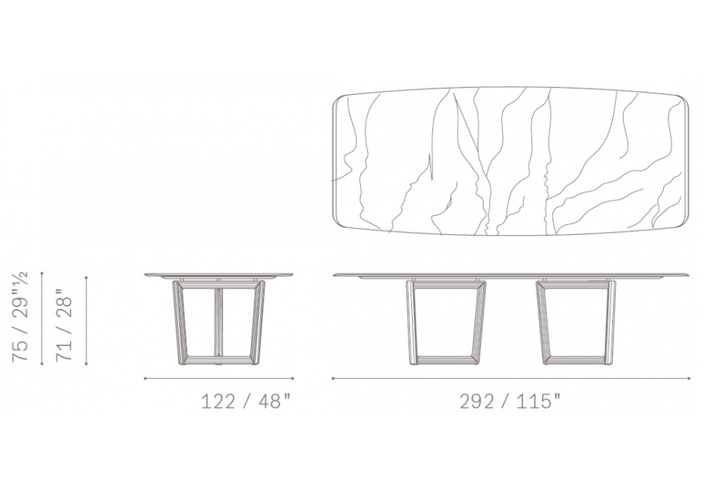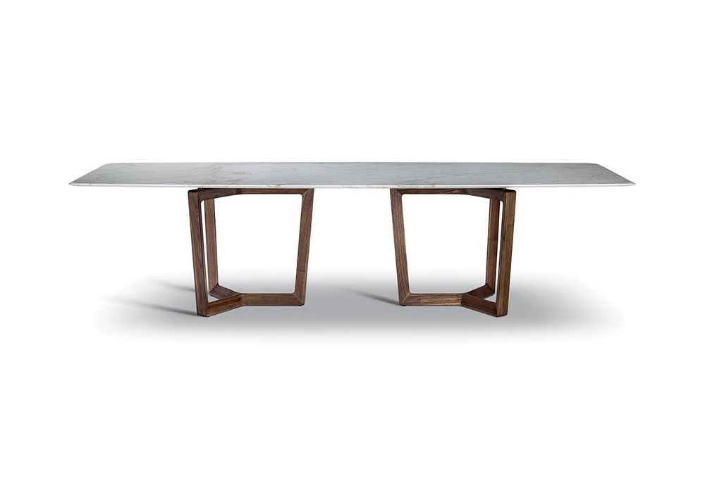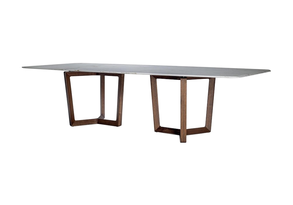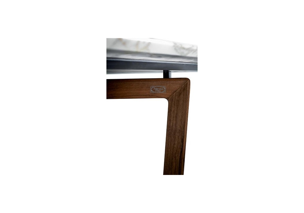 Bolero Ravel diseñada por Roberto Lazzeroni para Poltrona Frau es una mesa con tablero en mármol con bordes biselados, disponible en diferentes acabados. Estructura de soporte formada por una base de caballete autoportante que consta de tres patas en madera de nogal Canaletto o fresno.