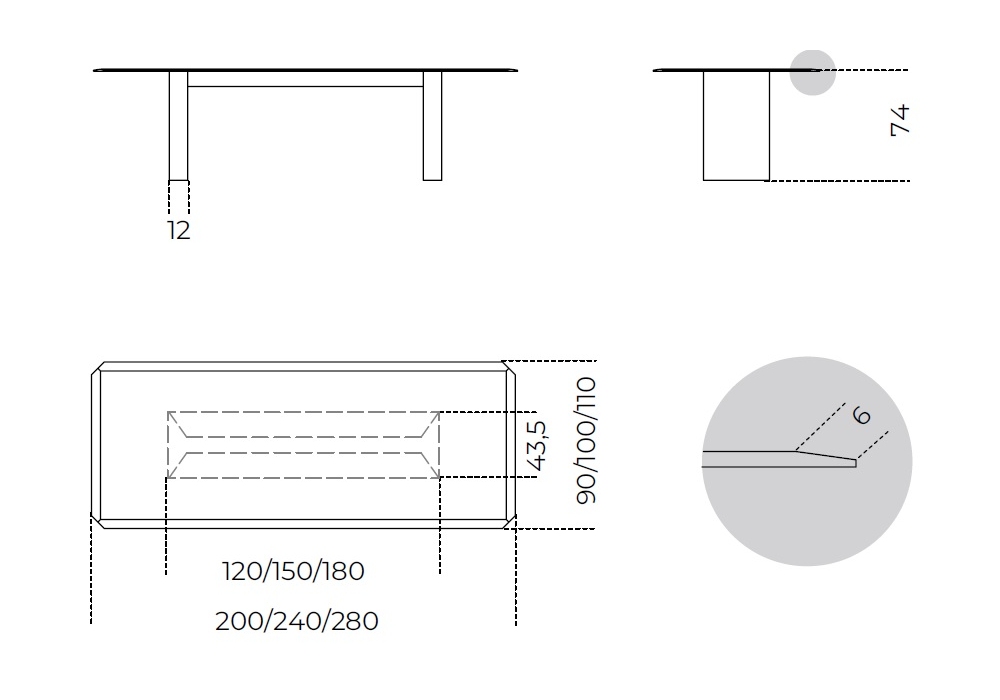 Dolm Plus diseñada por Oscar e Gabriele Buratti para Gallotti&Radice es una mesa con superficie en vidrio de 15mm pintado en el exclusivo acabado cepillado “Cashmere” en los colores gris oro o antracita o en el exclusivo acabado bronce antiguo o plomo. Importante bisel de 6 cm en todos los lados de la superficie. Patas en madera revestidas en cristal pintado templado de 6mm.