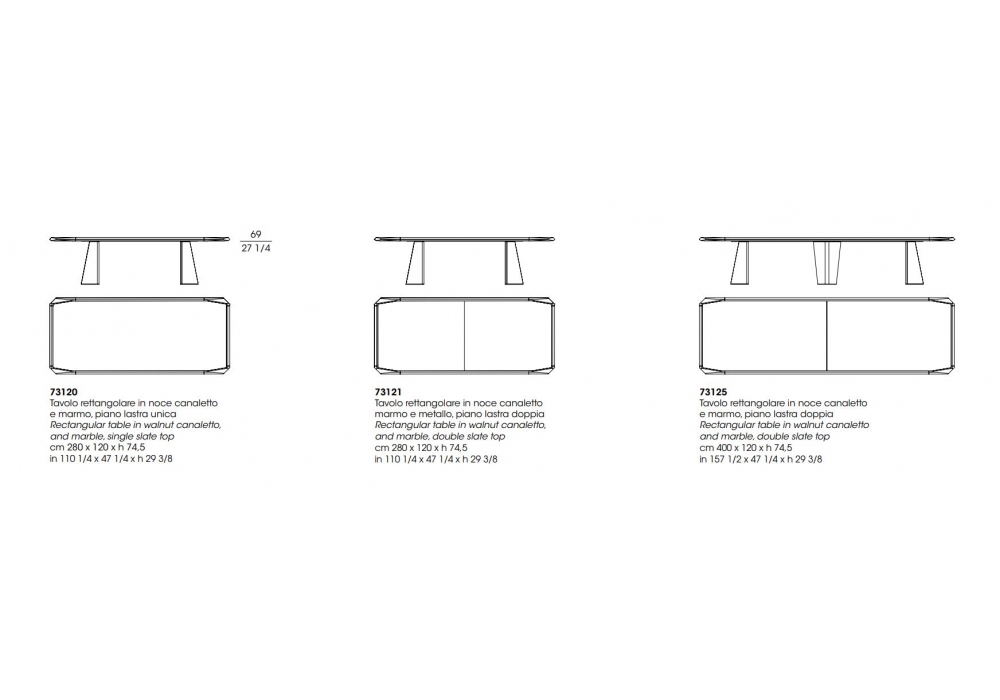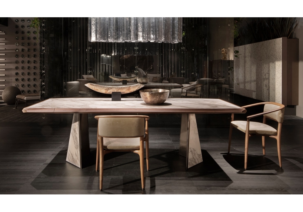 Amadeus diseñada por Roberto Lazzeroni para Giorgetti es una mesa rectangular con el tablero en nido de abeja de aluminio y estructura en nogal canaletto macizo en diferentes acabados. El tablero y las patas tienen inserciones de mármol en el mismo acabado. Amadeus está disponible en diferentes tamaños y modelos.