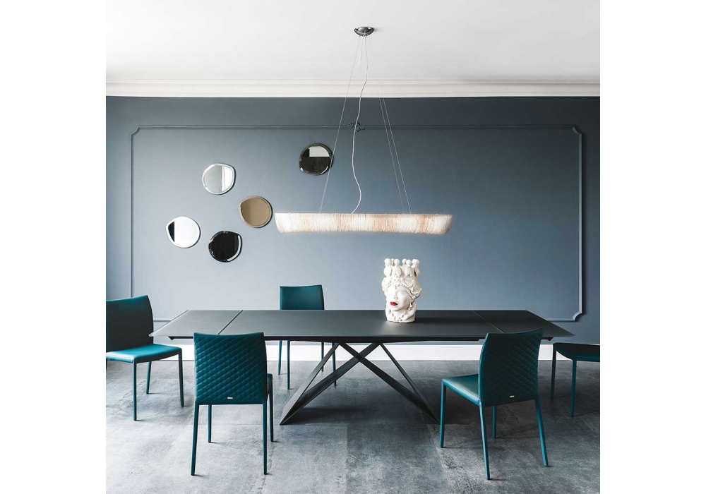 Premier Drive diseñada por A. Lucatello & G. Cattelan para Cattelan Italia es una mesa ampliable realizada con base en acero y tapa en vidrio extra transparente. Disponible en varios acabados y 3 tamaños.