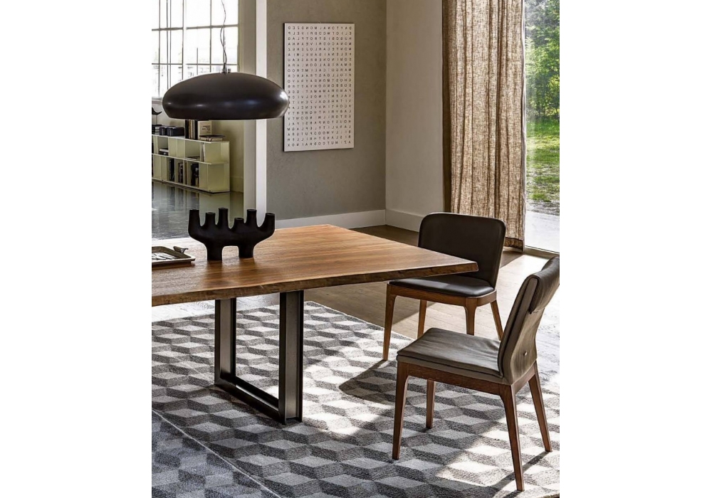 Sigma diseñada por Philip Jackson para Cattelan Italia es una mesa realizada con base en metal y tapa en roble o nogal canaletto con bordes irregulares en madera maciza. Bajo pedido posibilidad de posicionar las patas en paralelo o perpendicular.