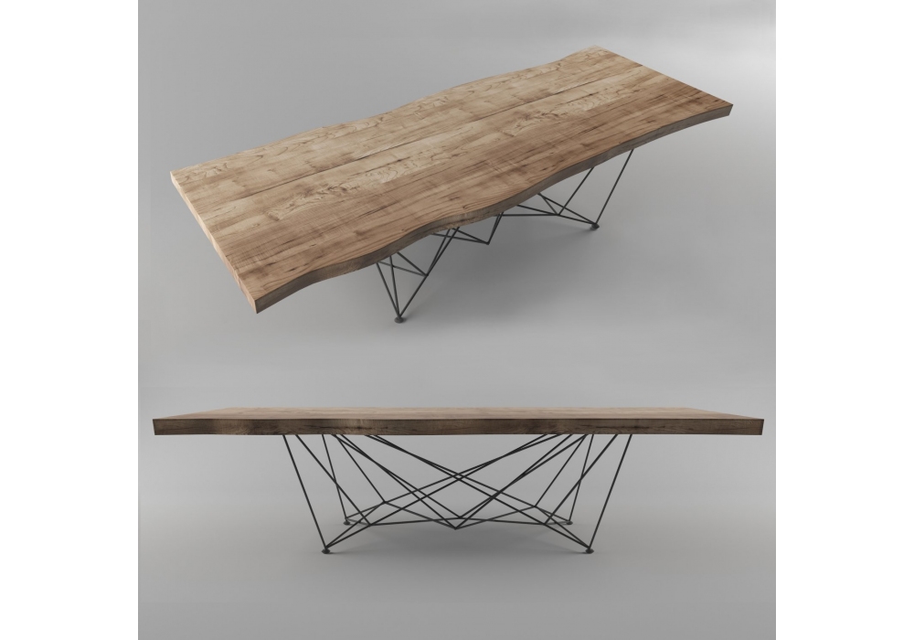 Gordon diseñada por Giorgio Cattelan para Cattelan Italia es una mesa con base en acero y tapa en madera con bordes irregulares en madera maciza. Disponible en dos medidas.