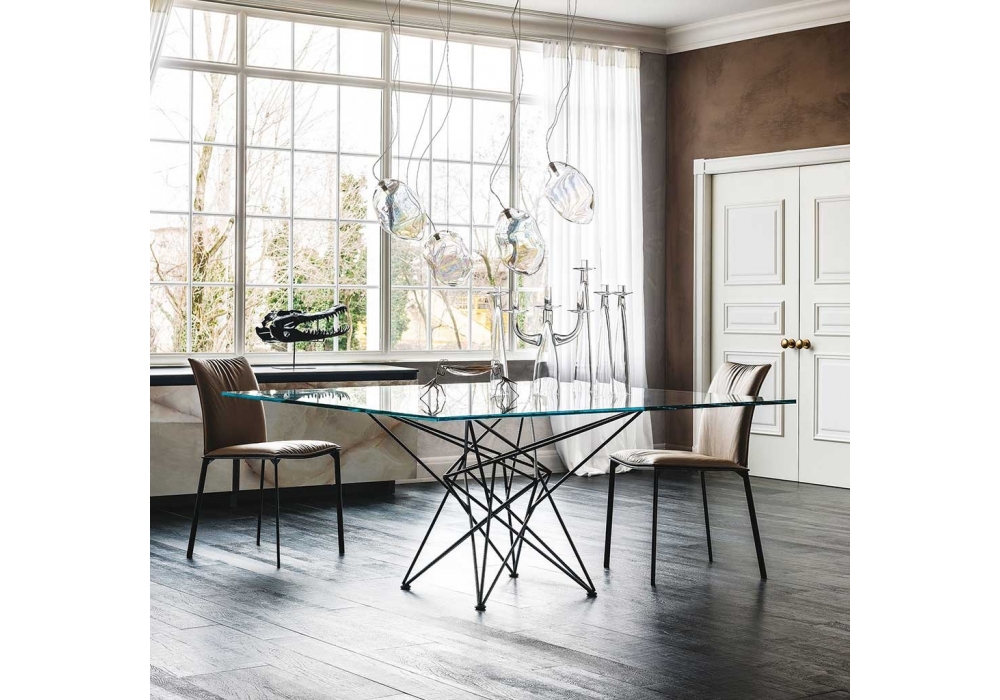 Gordon diseñada por Giorgio Cattelan para Cattelan Italia es una mesa con base en acero y tapa en cristal transparente con un espesor de 15 mm. Disponible en diferentes acabados y modelos. Los modelos 182 x 90 y 200 x 106 tienen un espesor de 12 mm.
