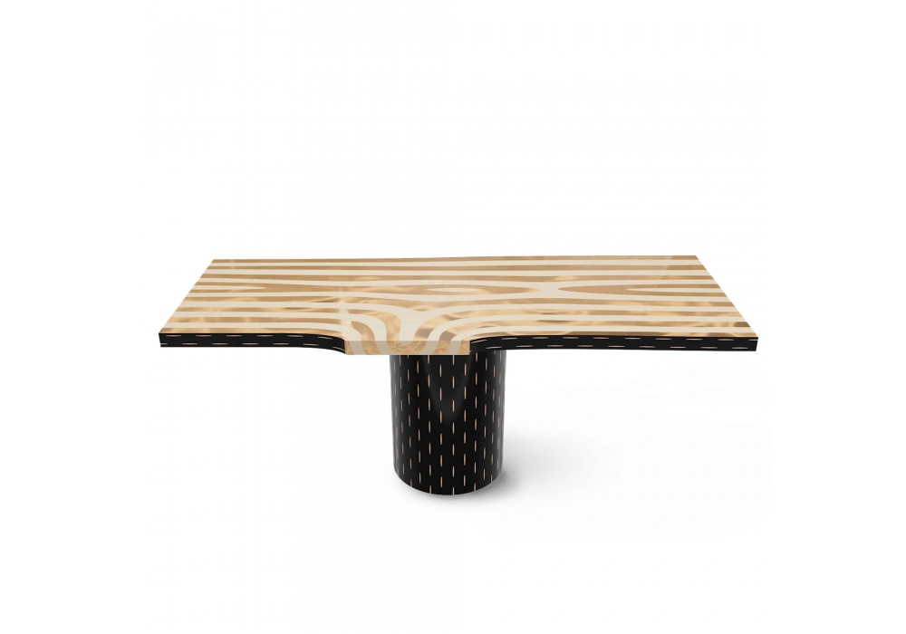 Forest Dining diseñada por Marcantonio para Scarlet Splendor es una mesa realizada en resina náutica y latón. Disponible en dos tamaños.