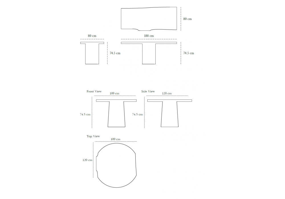 | Dimensiones | 188 x 80 x H 74.5 cm; Ø 104.6 x H 74 cm. |