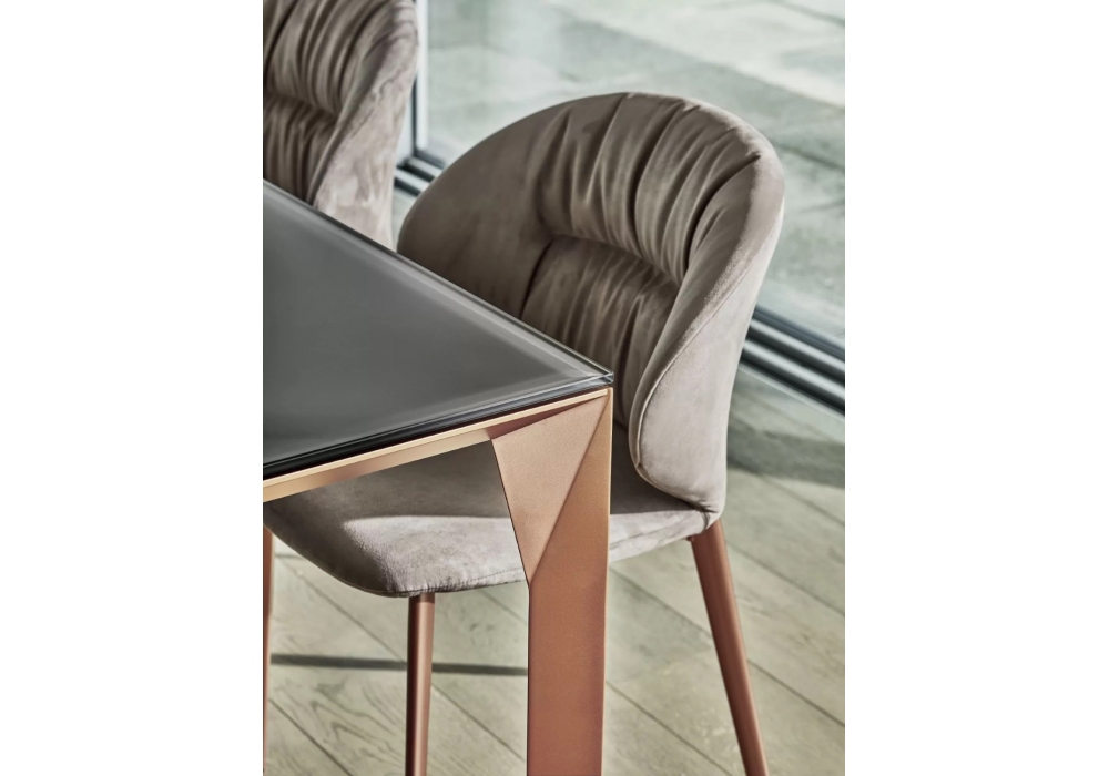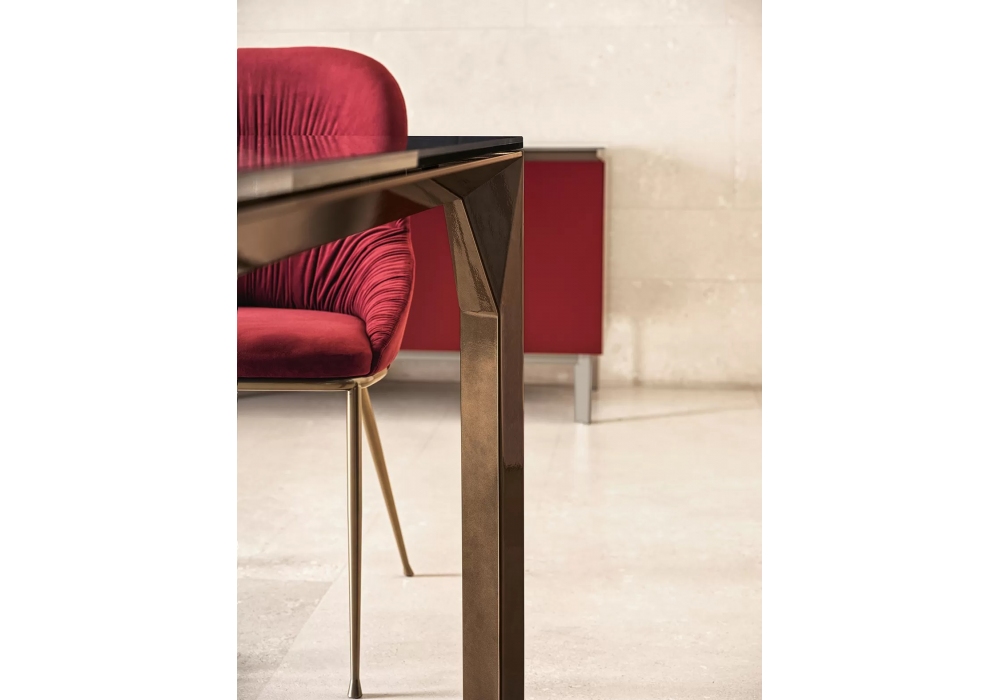 Mirage diseñada por Toshiyuki Yoshino para Bontempi es una mesa con estructura de aluminio lacado y tapa en cristal, cerámica o mármol. Están disponibles diferentes modelos y acabados.