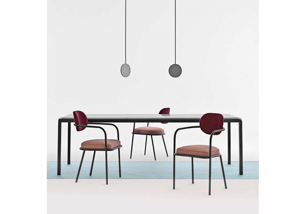 Bebop diseñada por Enrico Cesana para My Home Collection es una mesa cuadrangular con base en acero pintado y tablero en MDF lacado resistente a los arañazos o mármol. Bebop está disponible en diferentes tamaños y acabados.