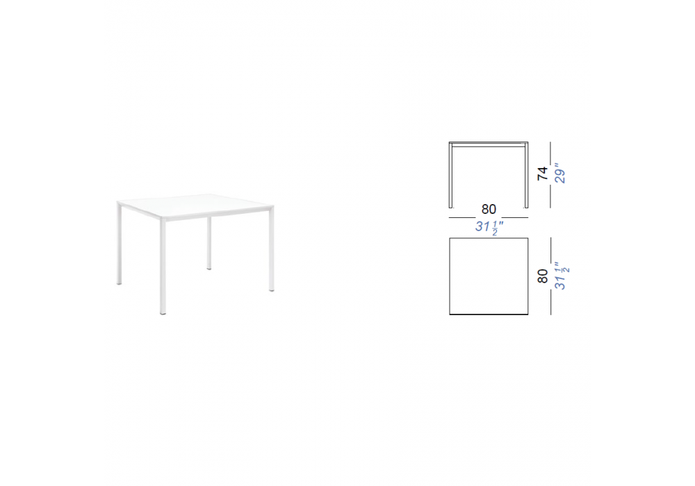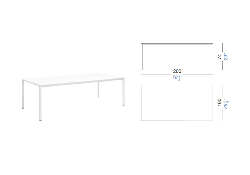 | Dimensiones | • 80 x 80 x H 74 cm; • 120 x 80 x H 74 cm; • 120 x 80 x H 74 cm; • 160 x 80 x H 74 cm; • 200 x 100 x 74 cm |