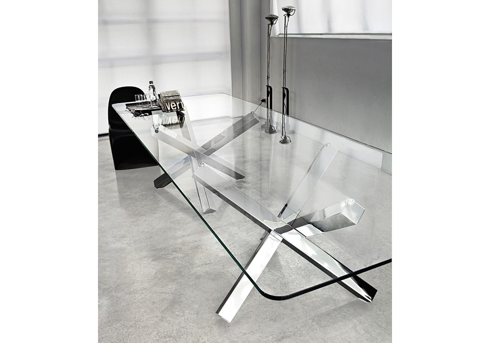 Aikido Two Bases diseñada por Studio Sovet para Sovet es una mesa realizada con bases de madera o metal y tapa de vidrio o cerámica. Disponible en diferentes acabados y dimensiones.