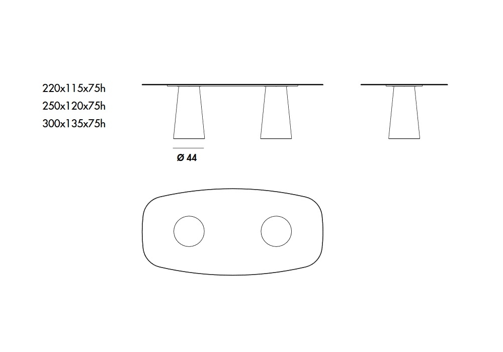 | Dimensiones | 220 x 115 x H 75 cm; 250 x 120 x H 75 cm; 300 x 135 x H 75 cm |