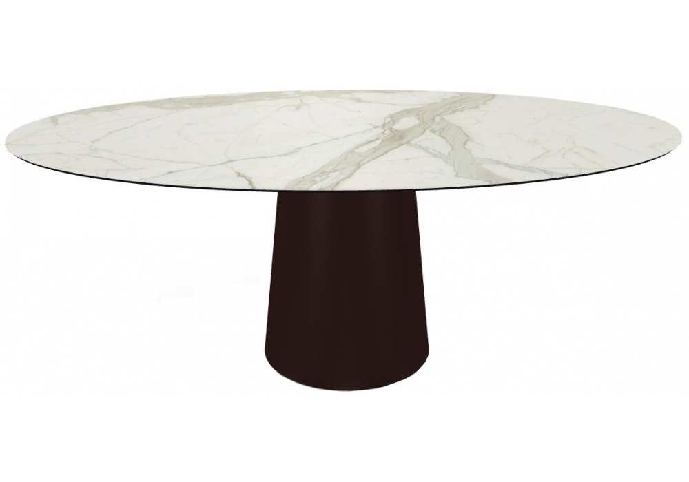 Totem diseñada por Studio Sovet para Sovet es una mesa elíptico realizada con base de metal y tapa en vidrio o cerámica. Disponible en diferentes acabados y dimensiones.
