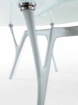 Pegaso designed by Angelotti and Cardile for Caimi Brevetti is a table with aluminum structure and top in tempered and bevelled transparent or satin glass. The hooking of the tops to the structure is made using special stainless steel discs glued to the top.