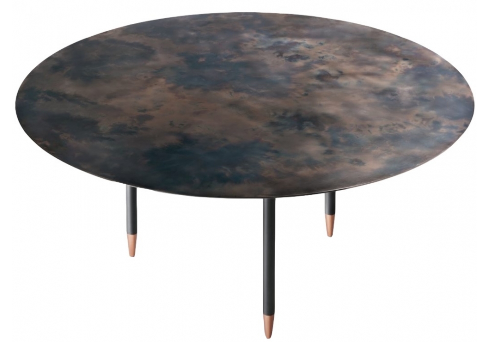Roma diseñada por Minelli Fossati para DeCastelli es una mesa redonda de metal con base y patas en hierro lacado negro y tapa en acero inoxidable. Disponible en diferentes dimensiones.